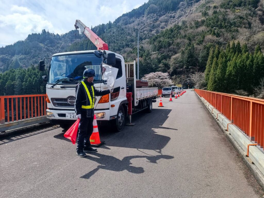 日田市で橋梁補修工事の警備をおこないました